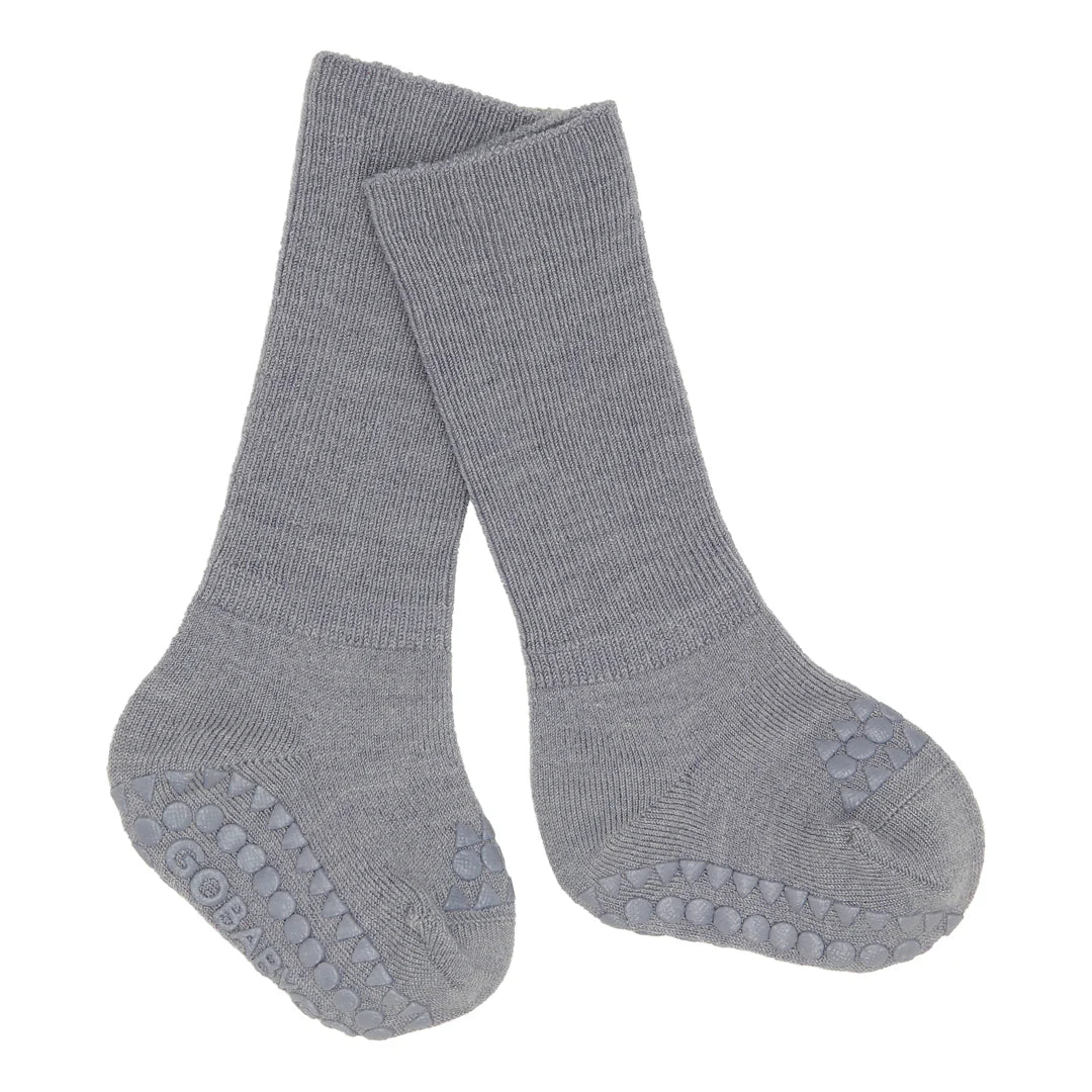 As meias antiderrapantes em lã merino da GoBabyGo foram criadas para dar segurança e conforto aos bebés e toddlers durante as primeiras fases de movimento. Com pontos antiderrapantes na sola e nos dedos, ajudam a evitar escorregões e promovem a confiança ao gatinhar, levantar e caminhar.